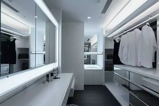 在进行衣帽间设计的时候,安排入足量照明的更衣空间,加以穿衣镜面,完善满足机能性需求。