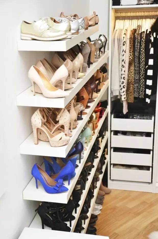 鞋子反方向摆可以让鞋架多出一点空间,因為不少鞋子都是前窄后宽,同方向摆放鞋子只会让鞋柜看起来更满而已。