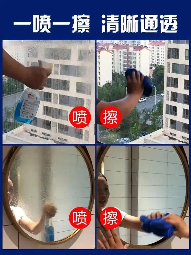 把稀释的白醋用喷壶喷洒到玻璃窗上,再用无绒毛巾从上往下擦拭,避免出现水纹痕迹,这样擦拭,玻璃窗能够透亮如新。