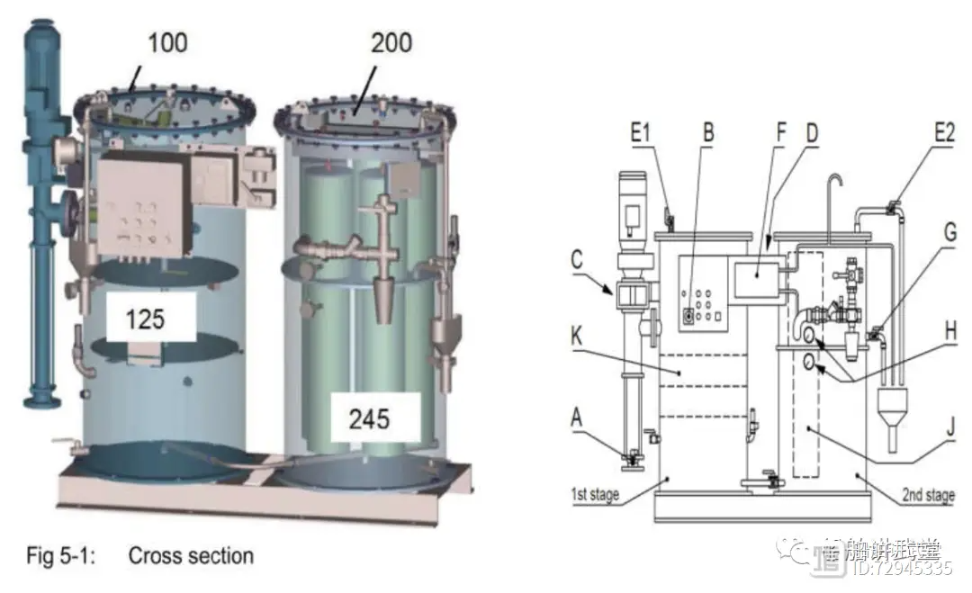 这种油水分离器不像以往带活性炭吸油的那种油水分离器,这种油水分离器其第一级和第二级是纯靠滤芯过滤的,滤芯很容易从里面拿出来。在清洁的时候,底部很浑浊的脏水,就不要全部放残掉,用一个吸水桶将底部脏水吸起来倒入渣油柜。拔出来的滤芯找一个开阔的位置,用高压水枪冲洗干净即可。冲洗干净装回,一切很顺利,于是先让油水分离器灌满干净的淡水静置一段时间。