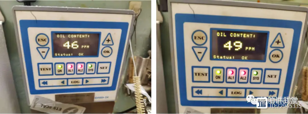 果然,油水显示浓度立马降到了18ppm,因为18ppm依旧高于15ppm,再用醋多浸泡一会儿,然后用矿泉水冲洗测量管,差不多了就开始用油水分离器水泵打循环,最后油水分离油分含量在13ppm稳定下来,油水含油量高警报也消除。