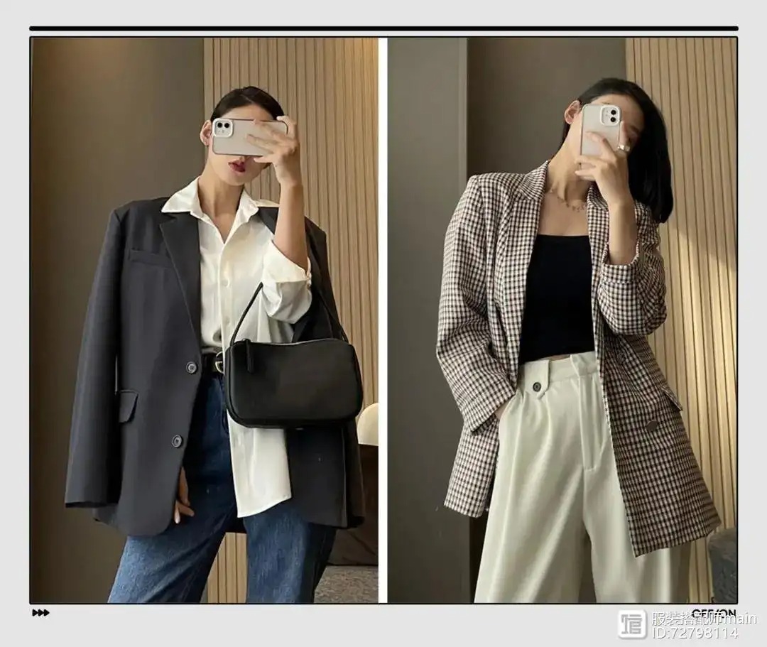 很多女生不爱穿西装,是因为肩部的种种问题,溜肩、肩窄等问题。记住带有垫肩的廓形西装专治肩部问题。