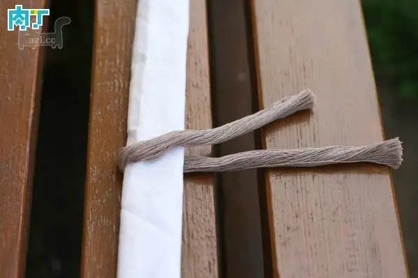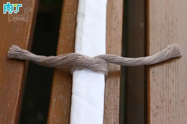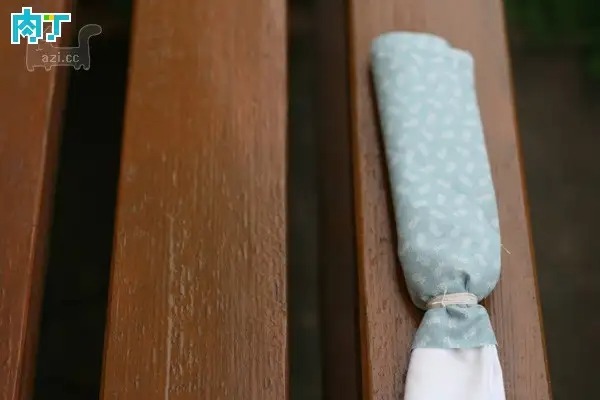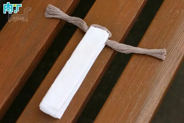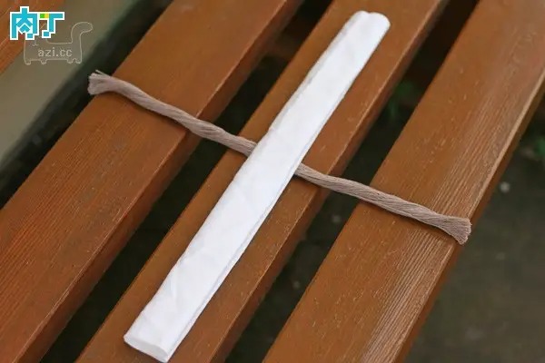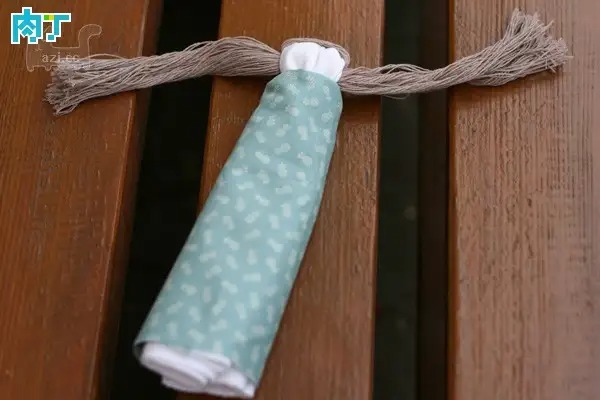 包裹成圆筒状,在颈部位置扎紧,如图。