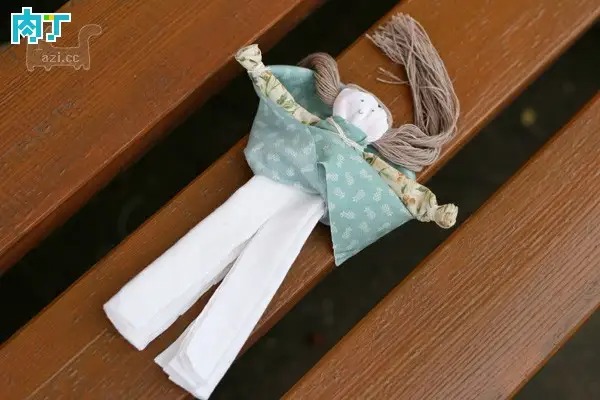 最后把头发打结,整理一下,娃娃就完成了,很简单,小朋友一学就会。