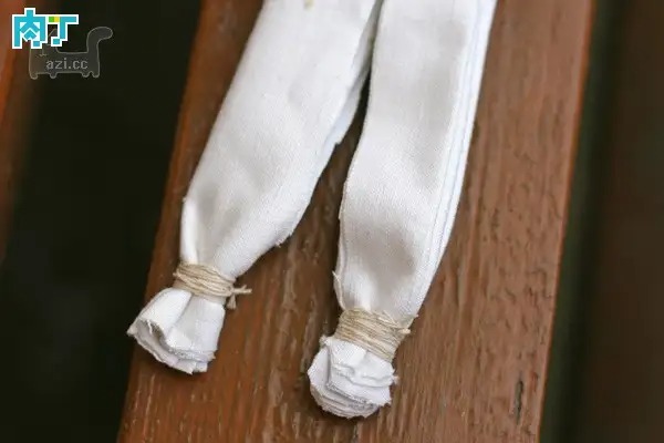 把白色圆筒布中间剪开,变成两条腿。