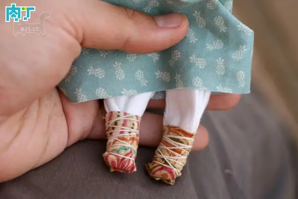 漂亮的小布头绑在脚上,变成漂亮的小脚丫。