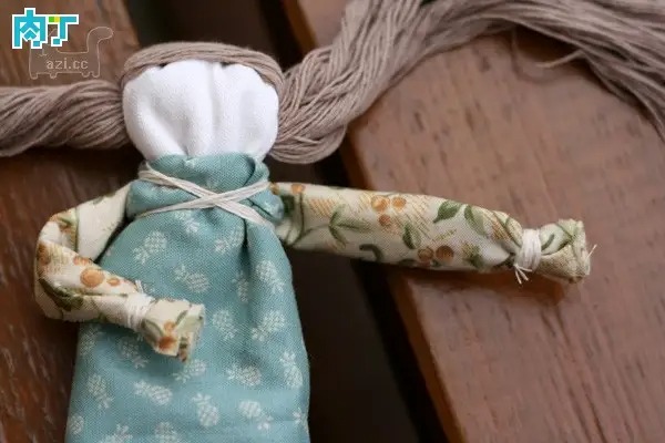 把手臂五花大绑绑在娃娃颈部下面,小手扎出来。