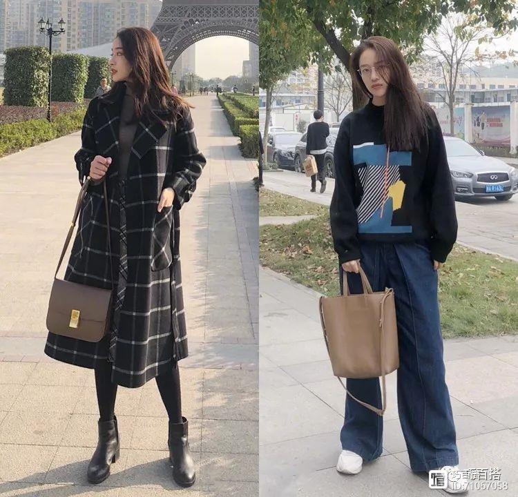 如果是暗色系的搭配如何穿出温柔感呢,最简单的就是通过气质温柔的配饰来点缀了,比如说小白鞋或者复古温柔的包包了。当然如果暗色系单品与潮元素碰撞的话,也能毫不费力让造型告别沉闷感呢,比如说格纹或者印花系的单品,就优雅又吸睛有没有!