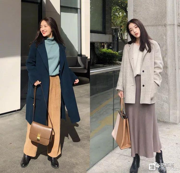 当然了,还可以选择同色系的搭配呢,不过搭配时也需要一些搭配技巧。比如这组造型的右侧搭配,选择顺色搭配或者不同材质,来丰富出造型的层次感,看上去会更加时髦有范儿哦。当然还可以选择色彩呼应的搭配方法,内搭的上衣或者下装与外套同色调,同样时髦又好看呢。