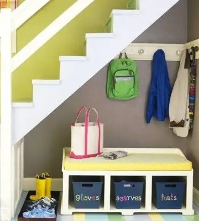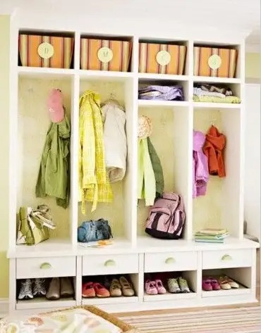 懒人使用家庭收纳:把家里的玄关按个人分类,分别在顶部的篮子上贴上标签,每个人对号入座,这样就不会混淆在一起,每天赶着上班上学的时候也不会相互干扰。只要每个人都收拾好的话,外观上也会很漂亮,过年走亲戚的进门看到也会大加赞赏一番的。