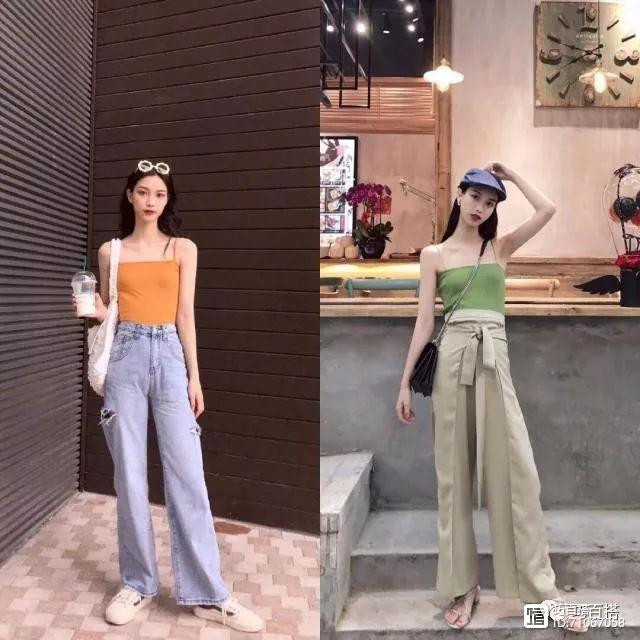 说起来,我们刚刚说过的分割身材比例的穿法,也能穿出高挑身材。而今天为大家种草的这组搭配,选择了色彩分割的搭配,上下装选择对比感较强的颜色,就能强调腰线,穿出九头身的好身材了。而且这种阔腿裤+小吊打的搭配,选择了很经典的上紧下松的穿法,上身后气质还能修饰身材,尽显一米八的女神气场!