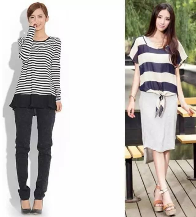 第五招:选择好横条纹,横线条越密集,越能显高瘦,反之,横线条越少稀疏,越显矮胖