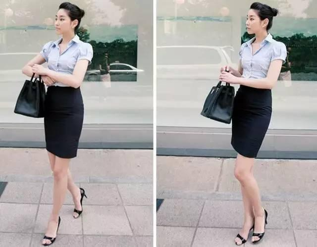 第三招:沙漏对称法,尽量使肩部和臀部的宽度,像X型,比如泡泡袖上衣配包臀裙,同时半身裙上提效果更好。