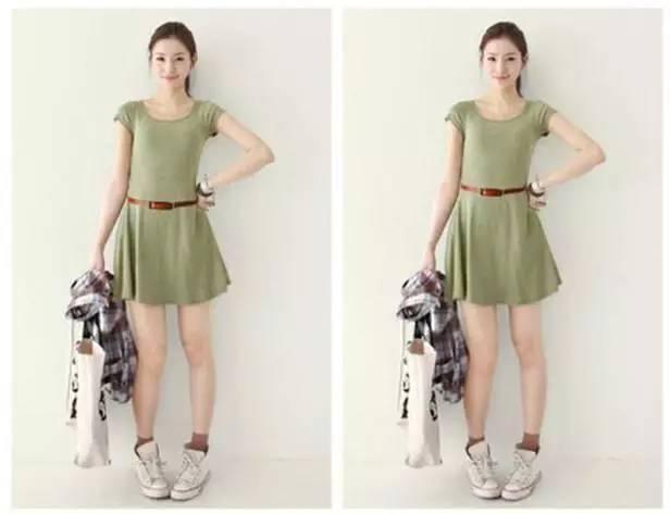第一招:腰线上提法,胯上胁下称之为腰,所以在这一段距离中利用腰带或者有收腰设计的衣服,可以显得腿长身材显瘦。