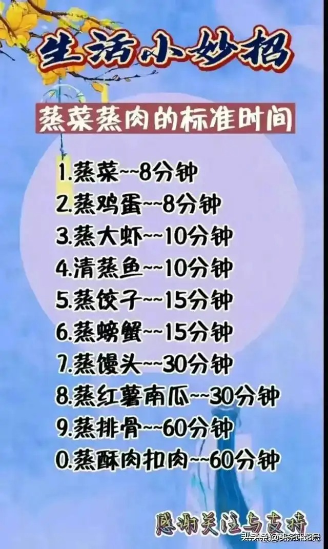 生活小常识,蒸肉、蒸菜的标准时间