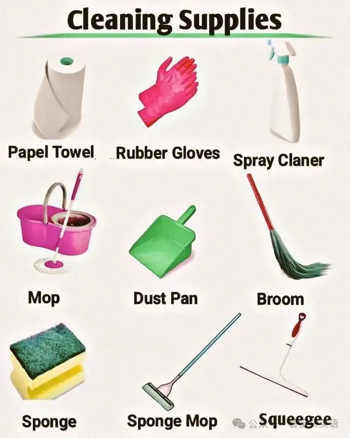 大家好!你是否遇到过这样的困扰:想买个拖把却不知道英文怎么说?或者看英剧美剧时,听到清洁用品的英文名称一脸茫然?今天我们就来学习一下日常生活中最常用的清洁用品英语词汇!建议收藏!