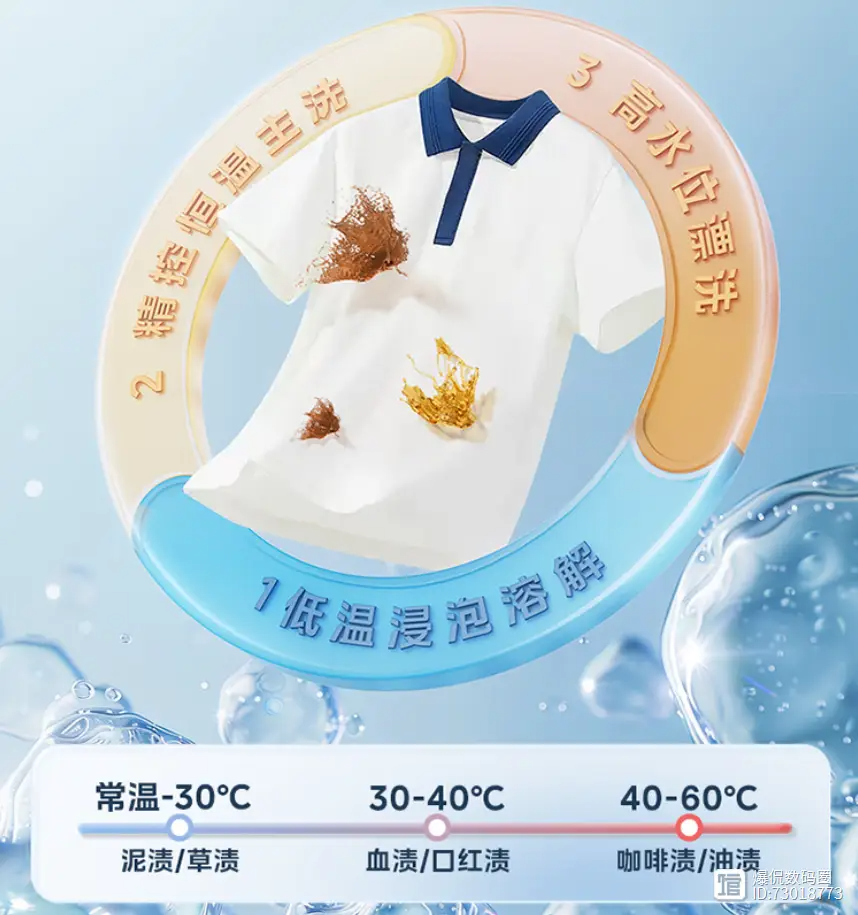 烘干配置上,内置智能精控低温热泵,配合NTC温湿度传感器精准控制温度在50℃左右,避免高温损伤衣物纤维,洗烘后依然柔软蓬松。运行噪音低至46分贝,夜间使用也安静不扰眠。