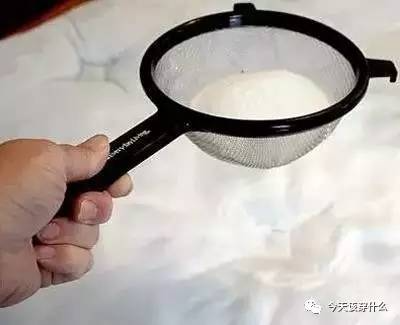 然后把小苏打倒在筛网里,并均匀地洒在床垫上~
