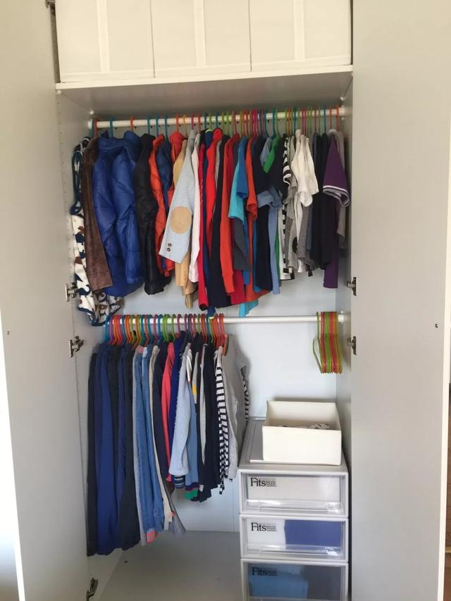 很简单,我们可以通过悬挂来减少家务量。能挂的统统挂起来,实在不便于悬挂的内衣、袜子等,再放到抽屉里。