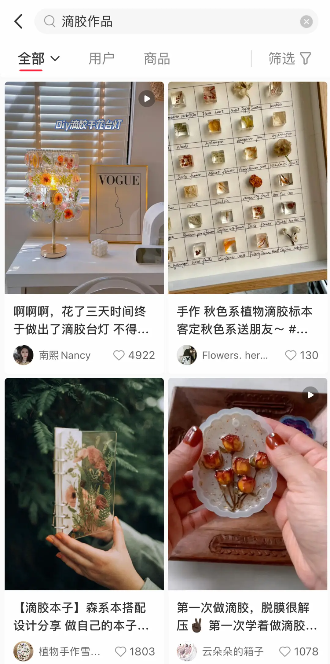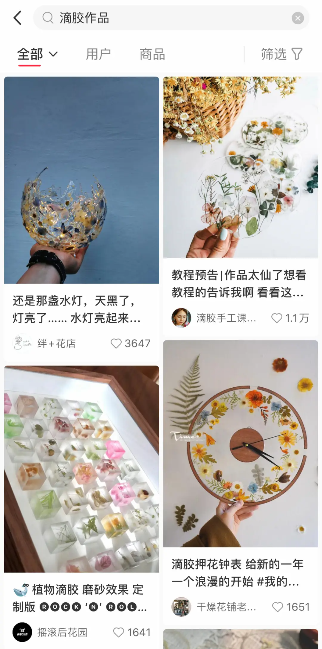 滴胶也是常能在手工类博主那里看到的,用透明澄澈的材质封存一些可可爱爱。