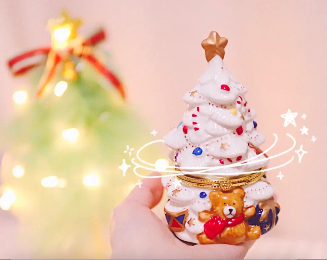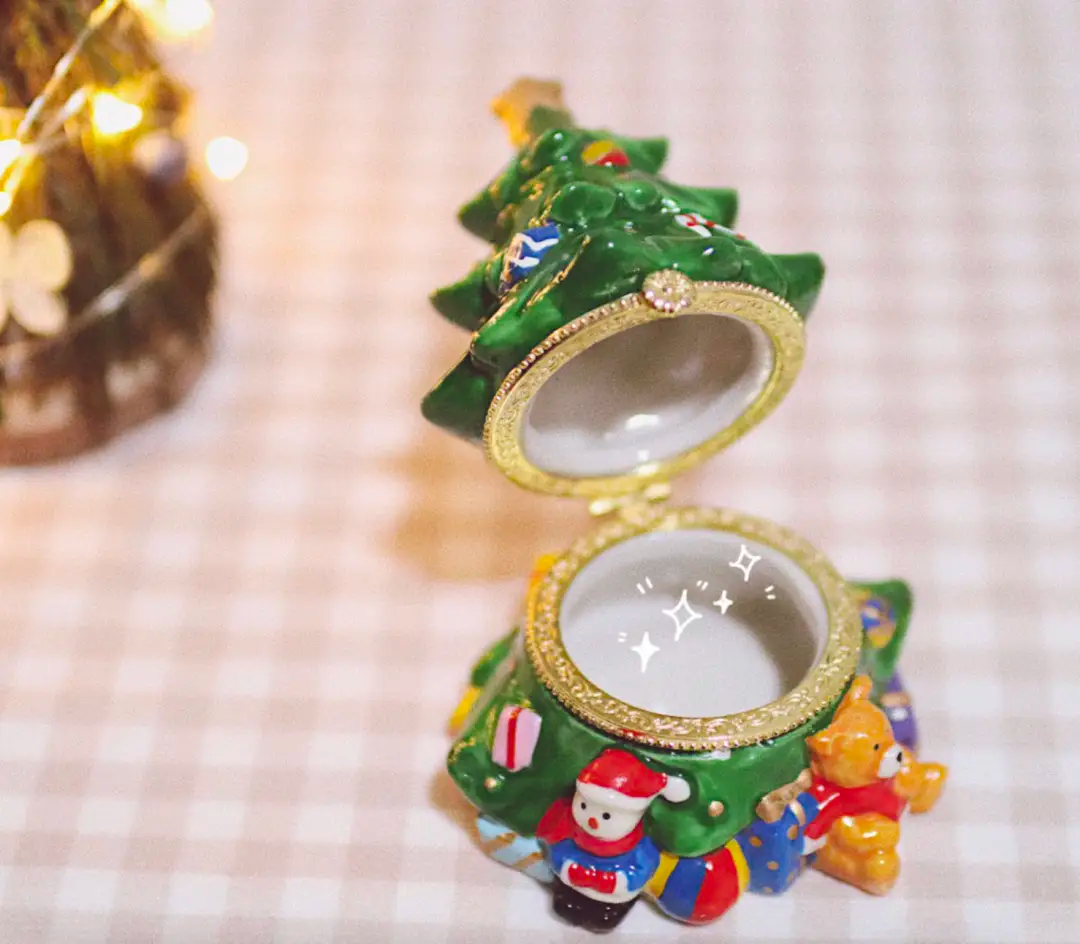 比如这款圣诞主题的陶瓷首饰收纳盒,看外表以为是个普通小摆件,其实可以收纳戒指等小玩意,用它装好戒指送人,这谁能不被虏获~
