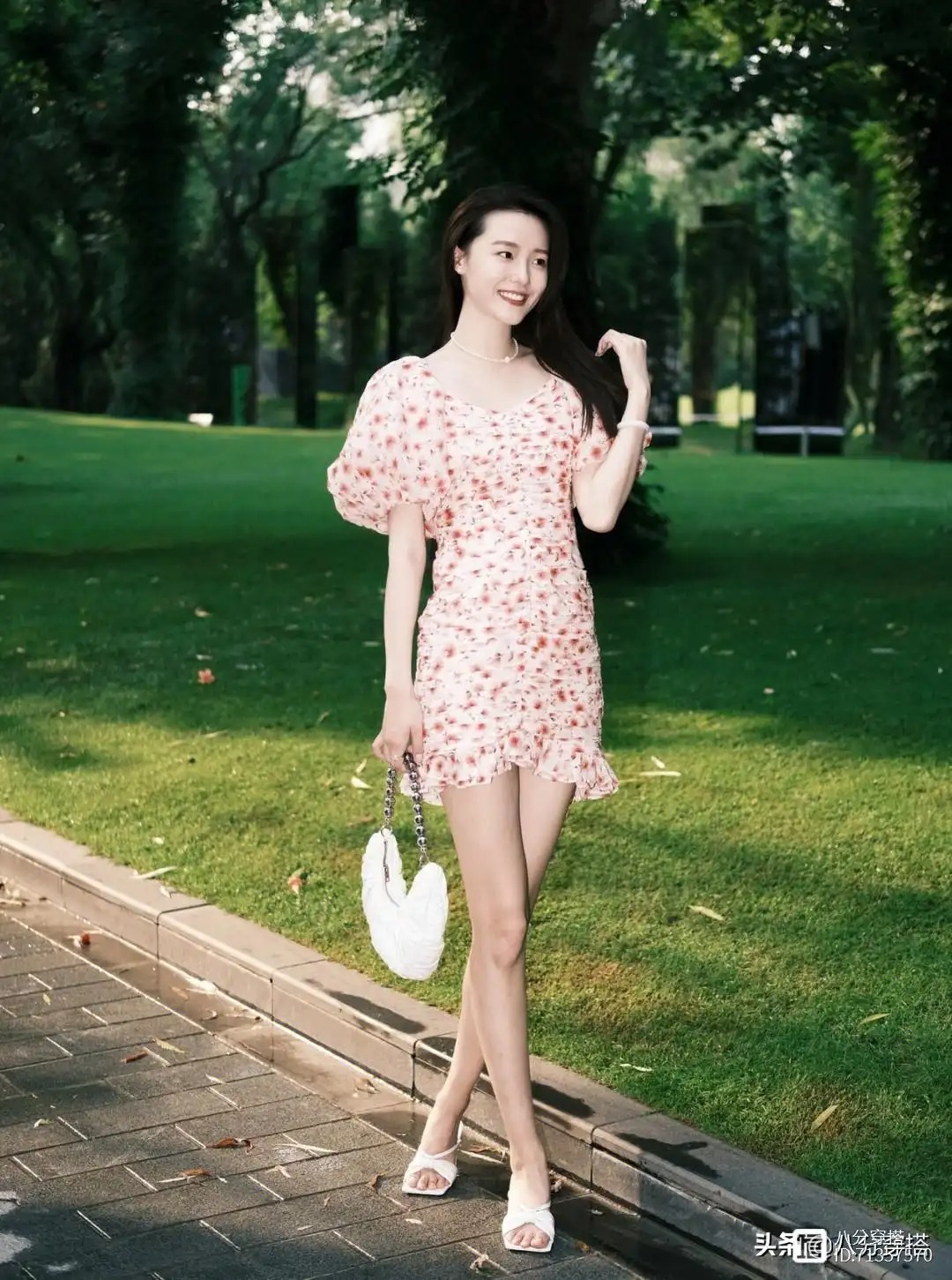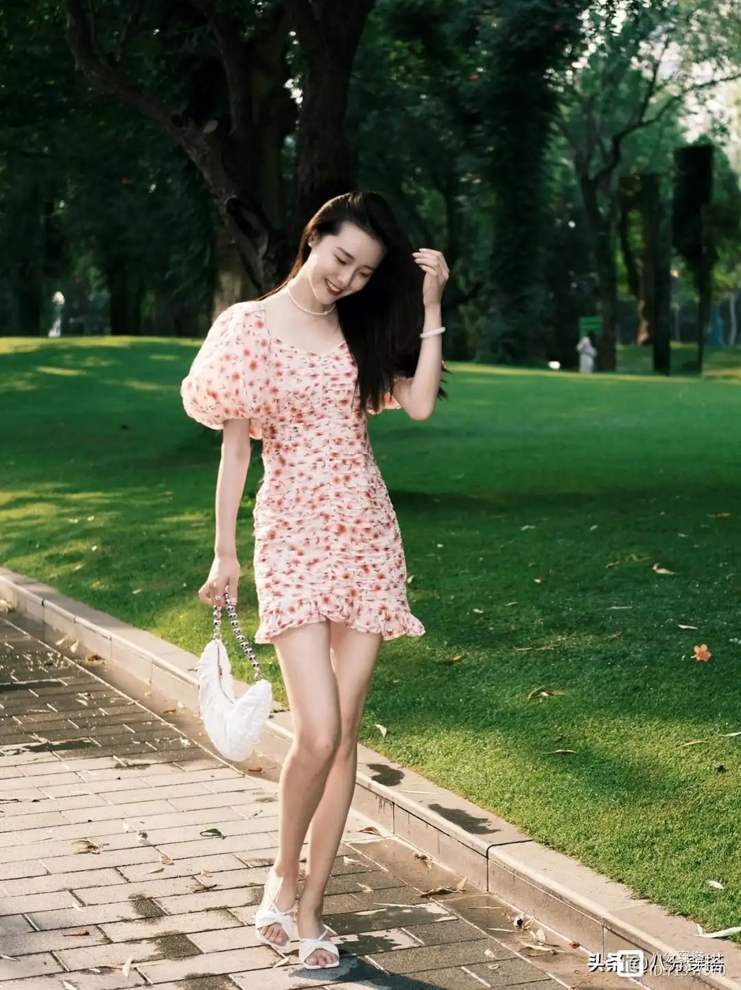 夏天真的拒绝不了一条清新的碎花裙,花裙本身就是清新甜美的代名词,所以夏天的穿搭频率非常的高,夏季闷热,所以要选择这种清爽的浅色系速化群,不容易出错,而且气质上也更为甜美和温柔,像这位博主选择的就是一条粉色的碎花裙,颜色甜美温柔又显白。轻松彰显出女性的温柔魅力。