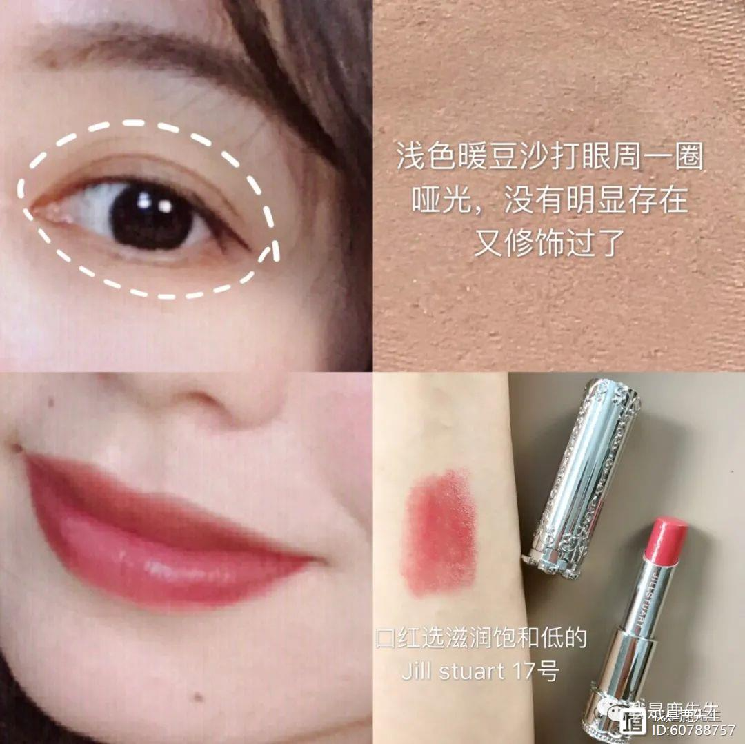 🍋眼妆tips■1.眼影使用浅色哑光眼睛大面积晕染■2.使用棕色眼线胶笔画内眼线,不拉长■3.眉毛要淡