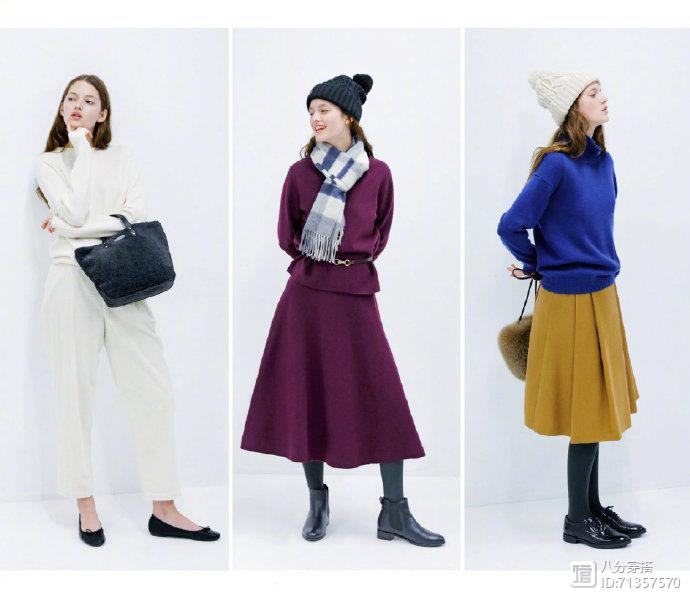 像上面的格纹长裙也不那么容易过时,当然也可以选择简单一点的纯色裙子搭配,就如这一组图片里,一身的紫色套装穿搭,不过紫色相对有一些显年龄,比较适合三十岁左右的女性穿搭,年轻的小姐姐就可以选择蓝色毛衣搭配黄色裙子,色调艳丽显得有活力,简约舒适搭配穿着也舒服,一顶针织帽的搭配,为乍暖还寒时节增加时髦感。