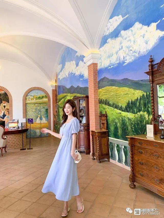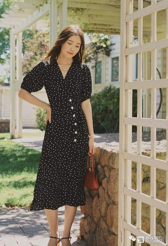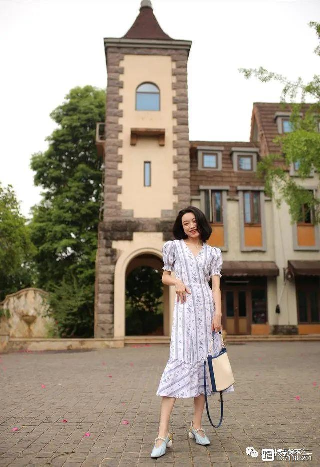 高腰线本身对于身材的修饰效果就非常强,再加上V型的领口,显高效果就更加明显了。V领可以修饰颈部线条,让颈部线条看起来更加修长,从侧面起到显高的作用。裙子是非常轻薄的雪纺面料,穿在身上垂感非常好,不用担心会显胖。