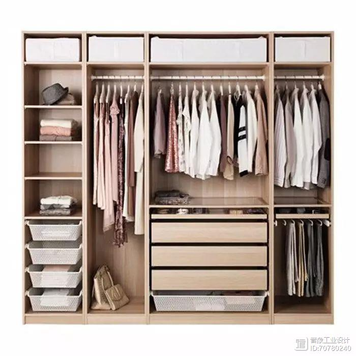 大多数抽屉空间,如果高度太深,想要找寻衣物的话,难免会弄乱,所以不如在设计衣柜时,就选择较矮的抽屉,方便收纳也方便整理。