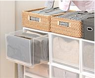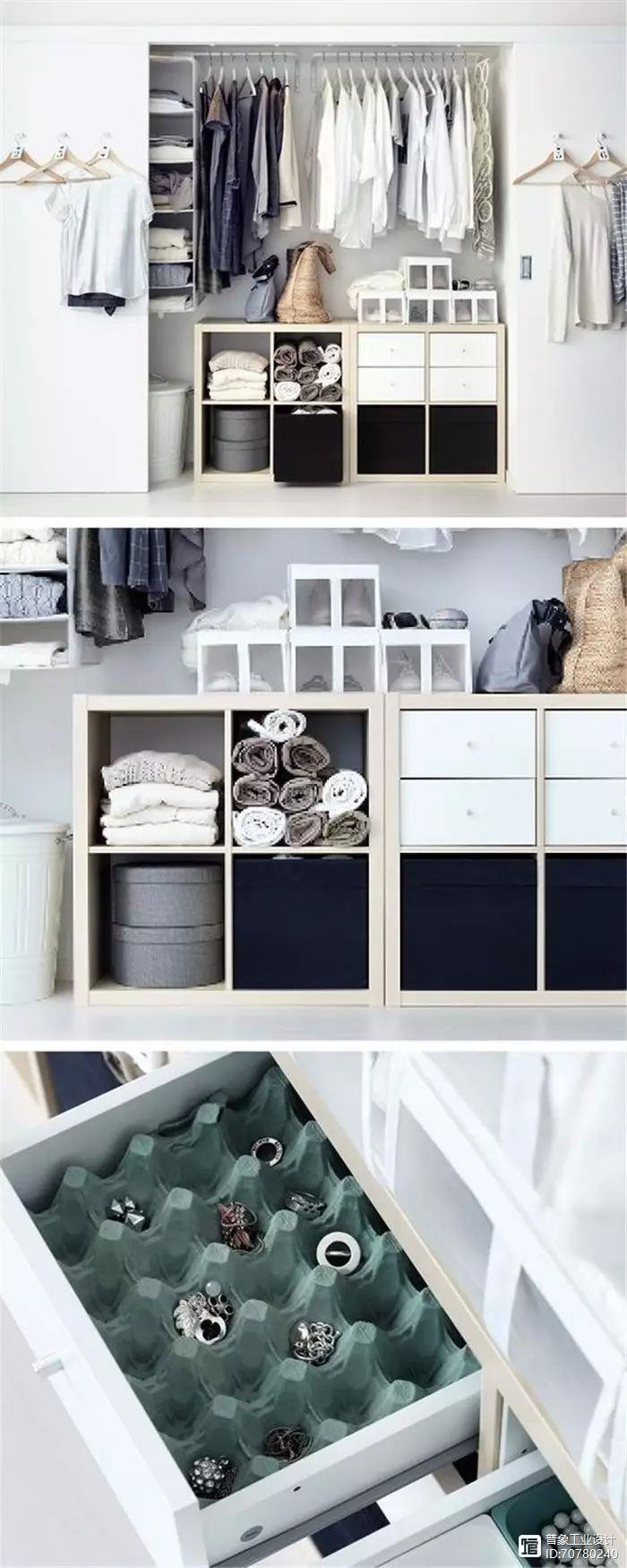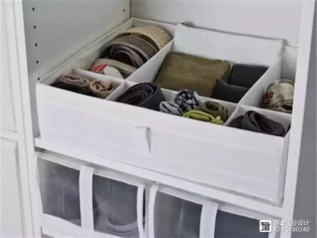如果衣橱格子划分的不够多,不如用储物盒规整衣柜的内部空间,更整洁、有序。