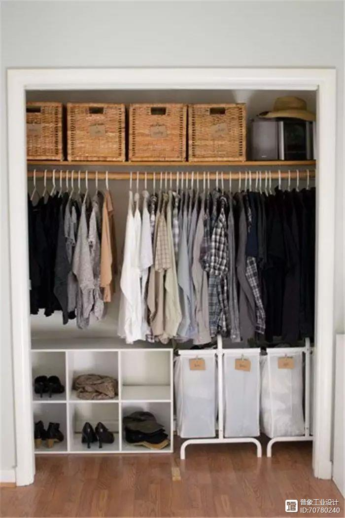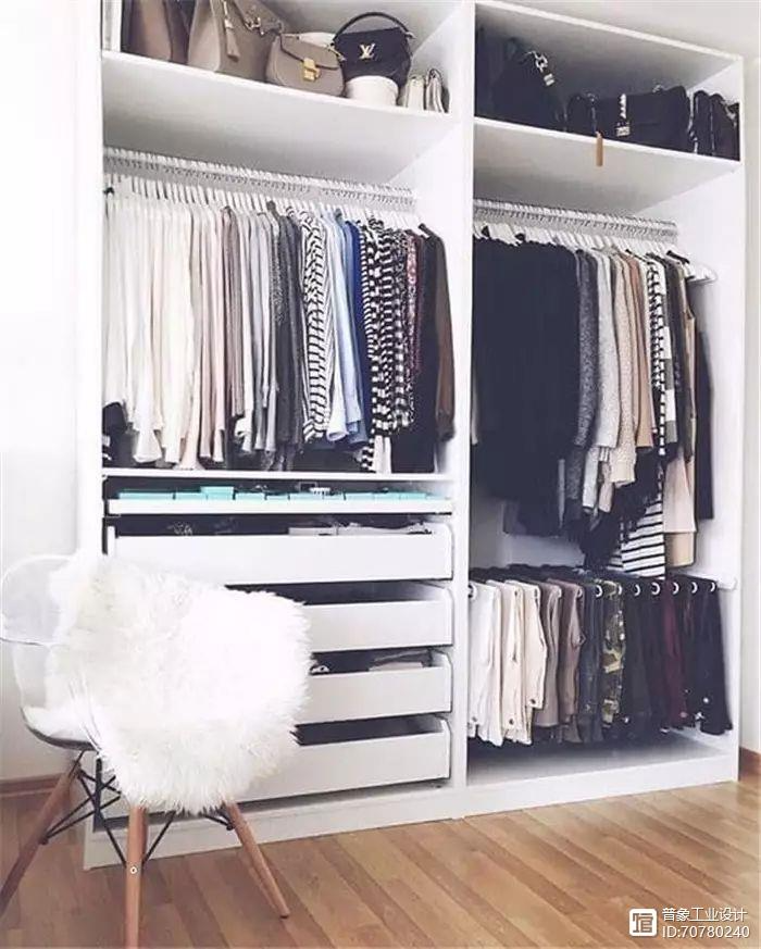 谁都希望有超大衣柜,但是小户型往往不允许,但是衬衫、西装、大衣和one piece连衣裙,一定要用挂的,所以衣柜再小,也要留有合理的挂衣杆空间。