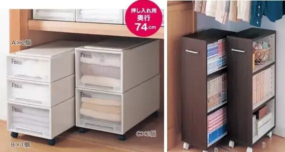 小编的话:说完了衣架,还有一种超级变态的收纳盒,和一般日本家庭里面的一种”衣柜“size是配合设计的,其实是传统日式房间都会有的壁橱,分为上下两格,里面放被子什么的。就是机器猫睡觉的那种壁橱。