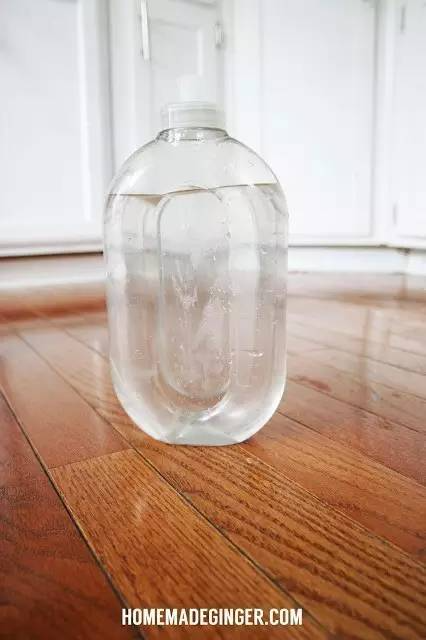 将2杯水、2勺白醋、10滴精油混合,制作成溶液。