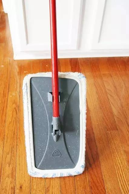溶液均匀洒在地板上,再用拖把拖干净即可,能消除厨房的异味,保持地面干净。