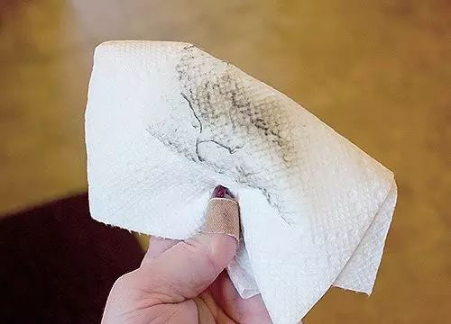 在纸巾上滴一点油擦拭油烟机,灰尘油污全部消失不见,再用温的肥皂水擦拭掉油迹即可。