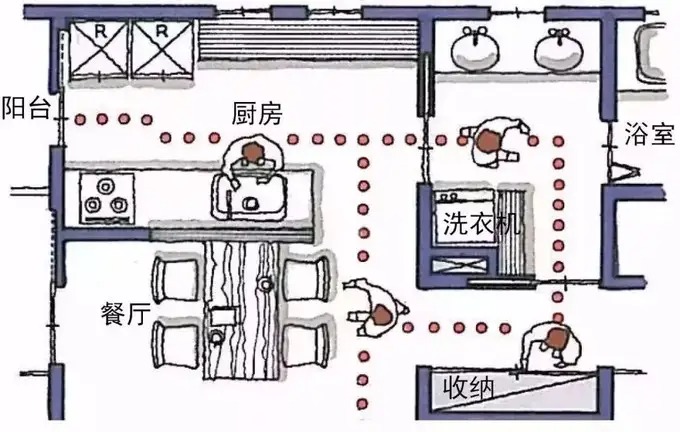 根据动线设计安排自己的物品摆放位置,让物品拿取符合人的使用习惯和物件使用的场景频率。