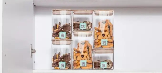 把食物放入玻璃罐中,用手机扫一扫二维码,食物所有情况即可记录在手机上。