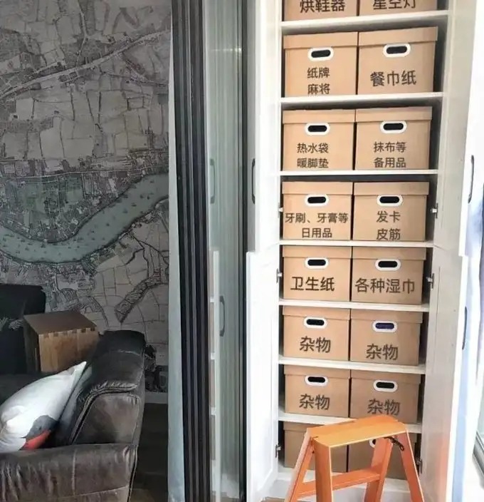 给自己的物品建立一个检索系统,将所有物品分类标记好,查找的时候只需对照放置区域的检索标签,即可轻松找到。