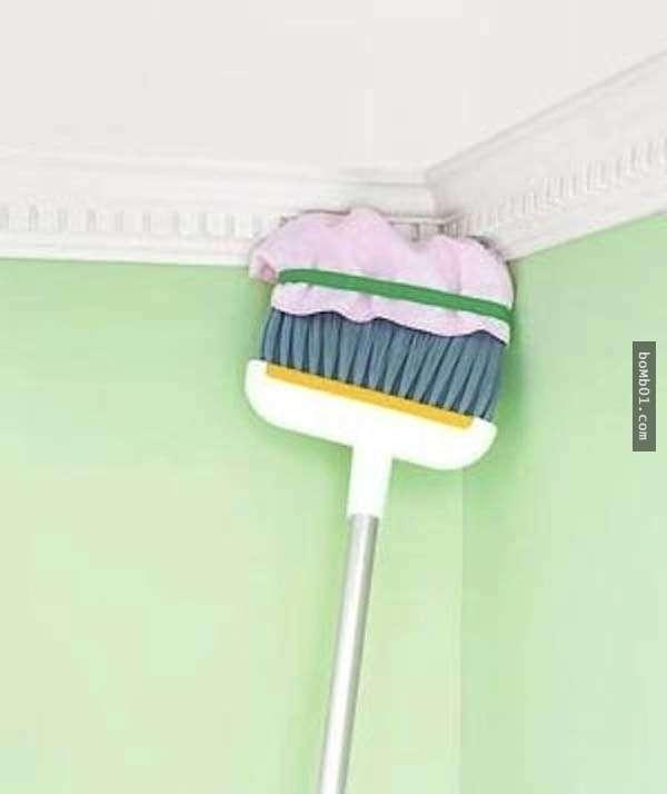 ▼8、把毛巾绑到扫帚的底端可以帮助你清理高的、你够不著的地方。
