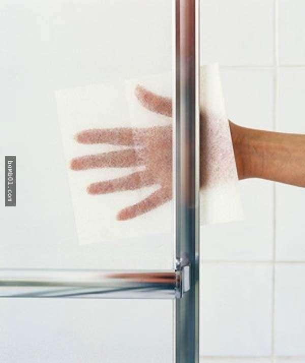 ▼4、用除静电纸去除玻璃门上的灰尘。