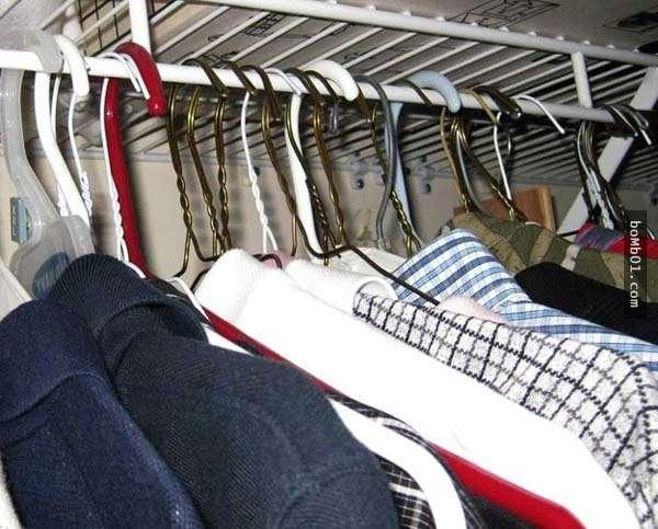 ▼18、用衣架去摆脱那些不穿的衣服。把不穿的衣服倒著挂,你穿的衣服正著挂。这样你就可以看到你不穿的衣服。