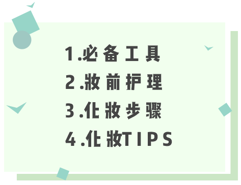 在化妆之前,我们要把化妆工具准备好。考虑到这是入门级别教学,工具种类已经做到最精简,你们更可以一物多用!