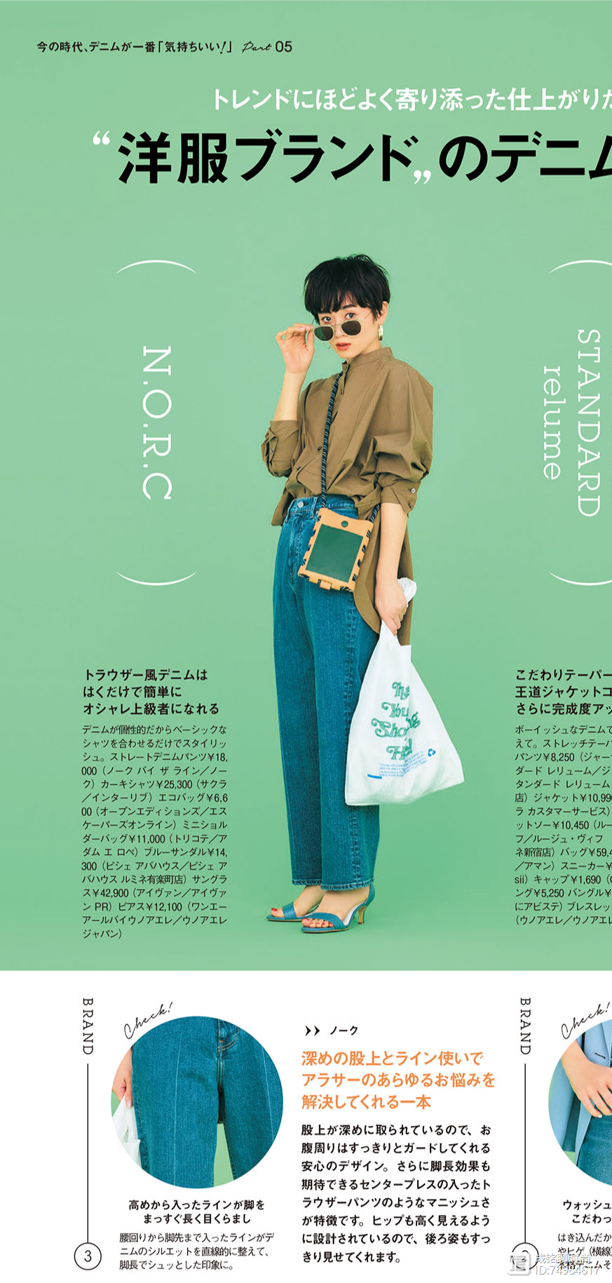 在挑选外套时,尽量以短款的设计为主,不仅穿起来轻松自在,简洁大气,也可以通过外套下摆的垂落使腰线得到点明。比如这款牛仔外套,样式越短,越显上短下长的身型。