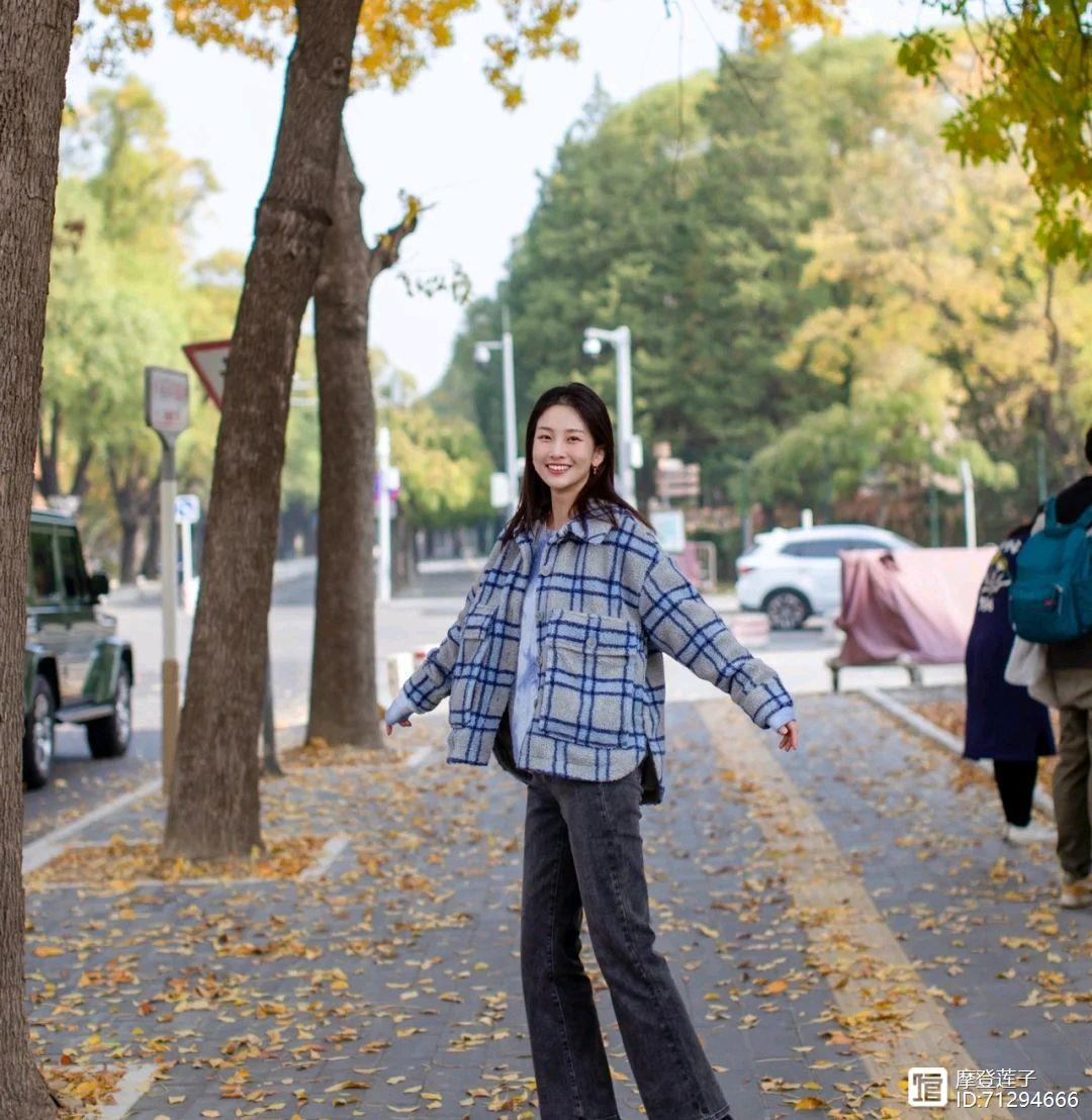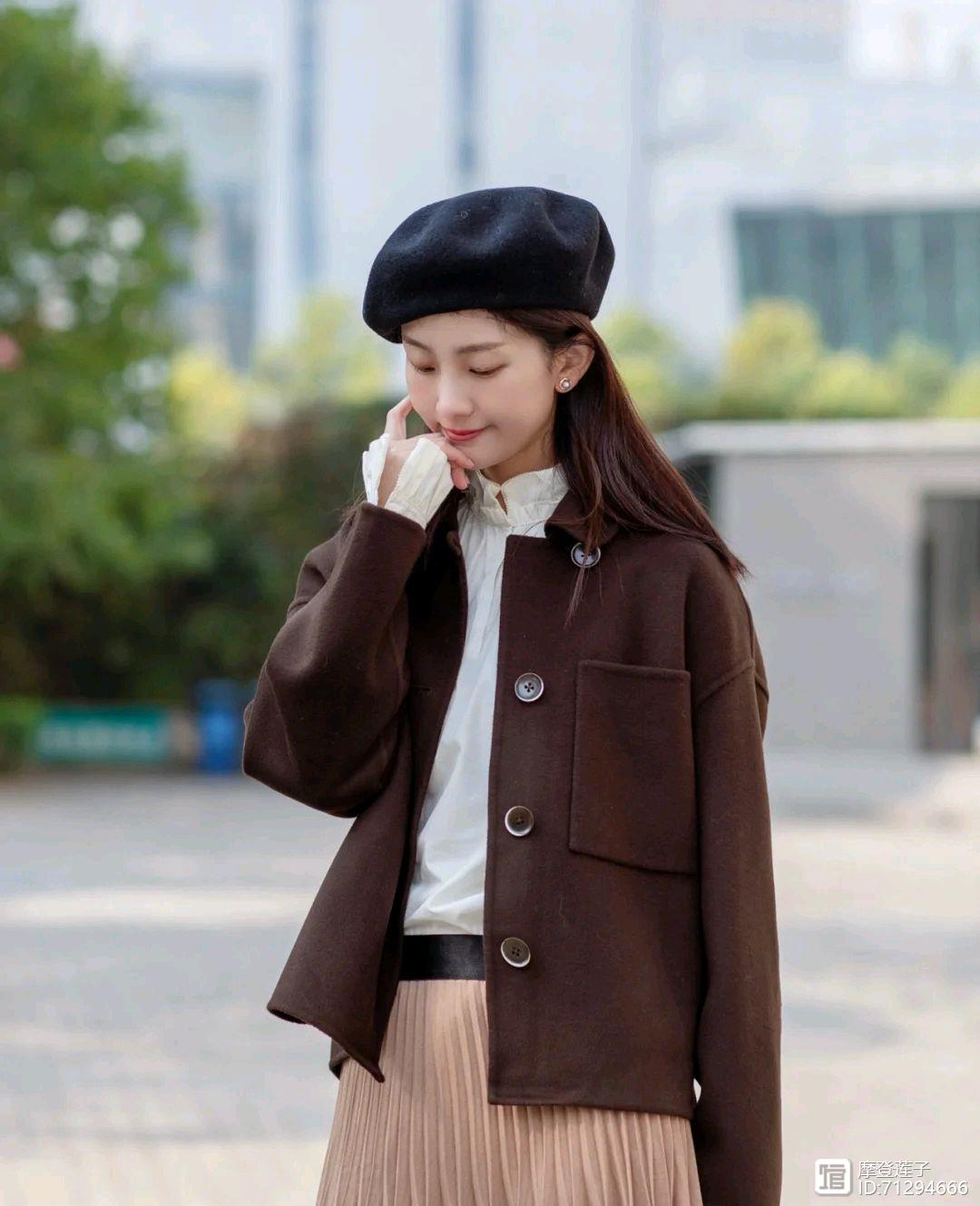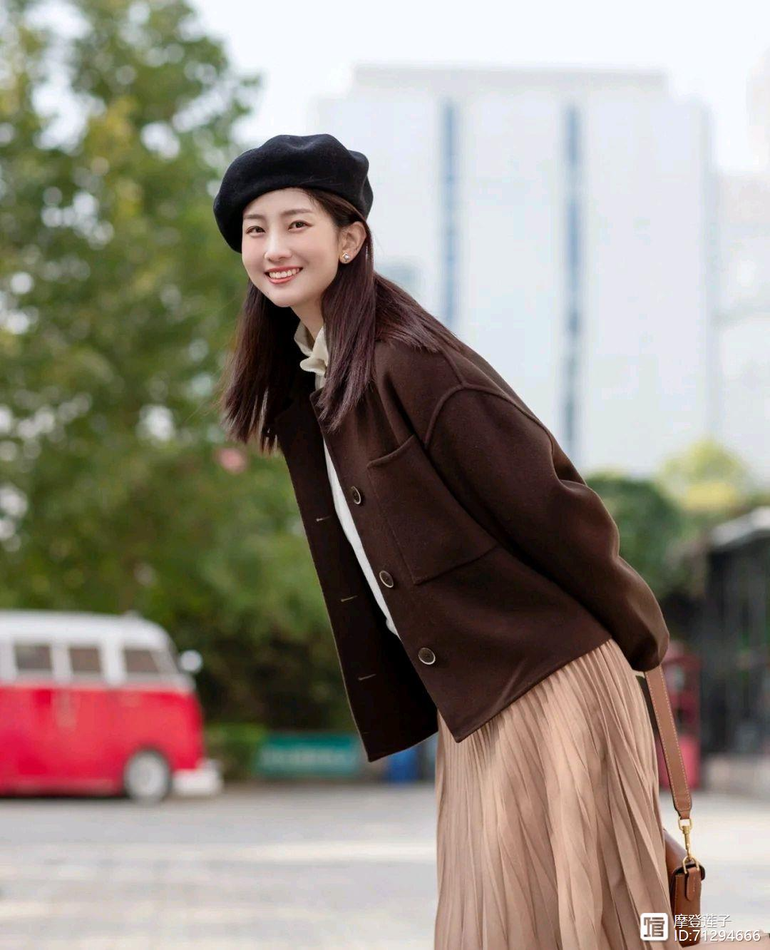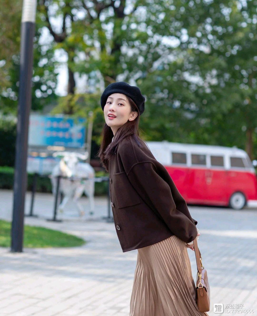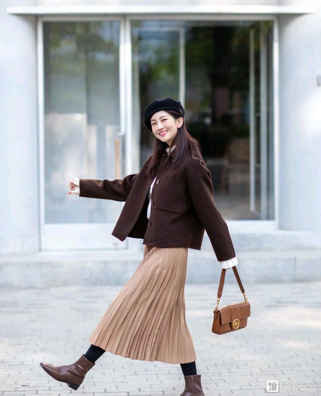 再加上这件驼色外套是短款设计,这就高级了,因为短款设计的外套穿在身上,不管是搭配裙装还是搭配裤装,都会显得腿很长,所以很自然地就把自身的魅力呈现出来。