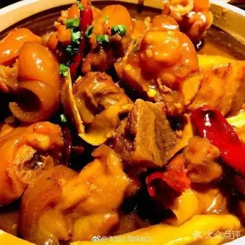 4,锅留底油下入姜片,葱段,八角,桂皮香叶,豆瓣酱,辣妹子加耗油,生抽,加啤酒加水下入猪手,鸡爪,调盐,糖色,味精,胡椒粉,老抽,大火烧开小火慢炖收汁勾欠淋明油即可。