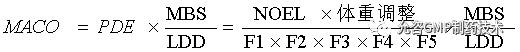 F3 | 短期接触急性毒性研究的可变系数(F3=1, 研究时间至少为动物寿命一半,鼠、兔1年,猫、狗、猴7年;F3=1器官形成的整个过程的生殖研究;F3=2 对啮齿动物6个月或者非啮齿动物3.5年的研究;F3=5啮齿动物3个月或者非啮齿动物2年的研究;F3=10更短的研究时间) |