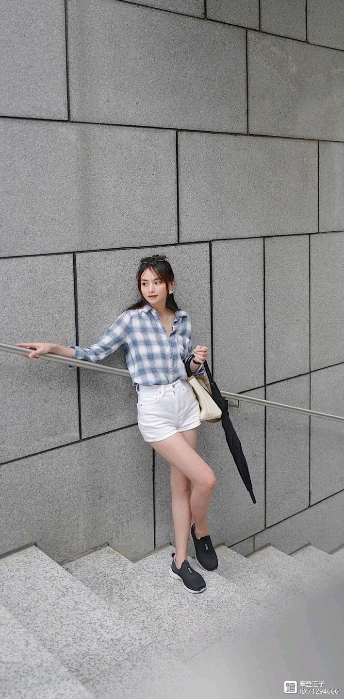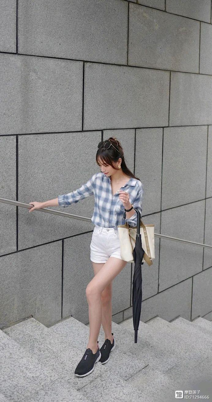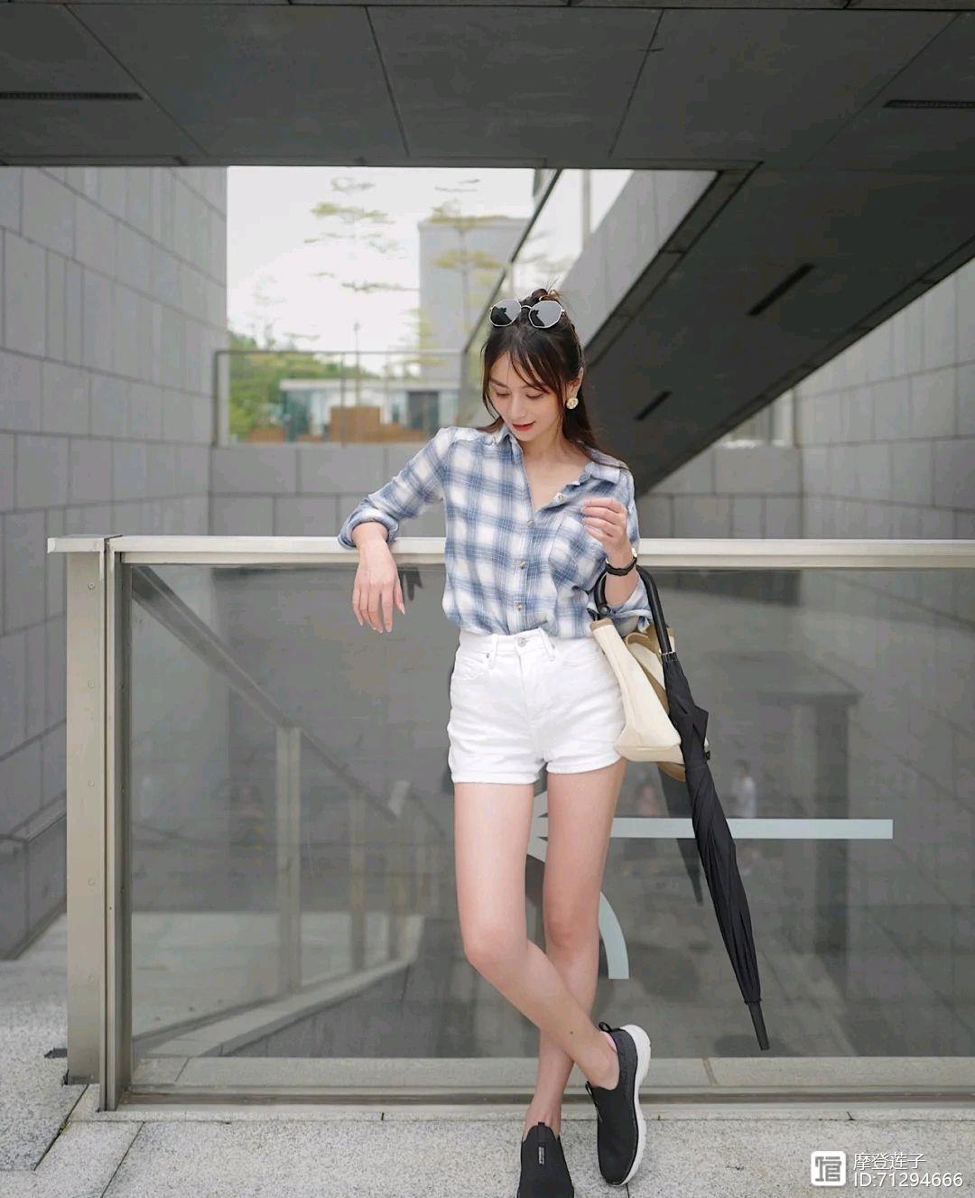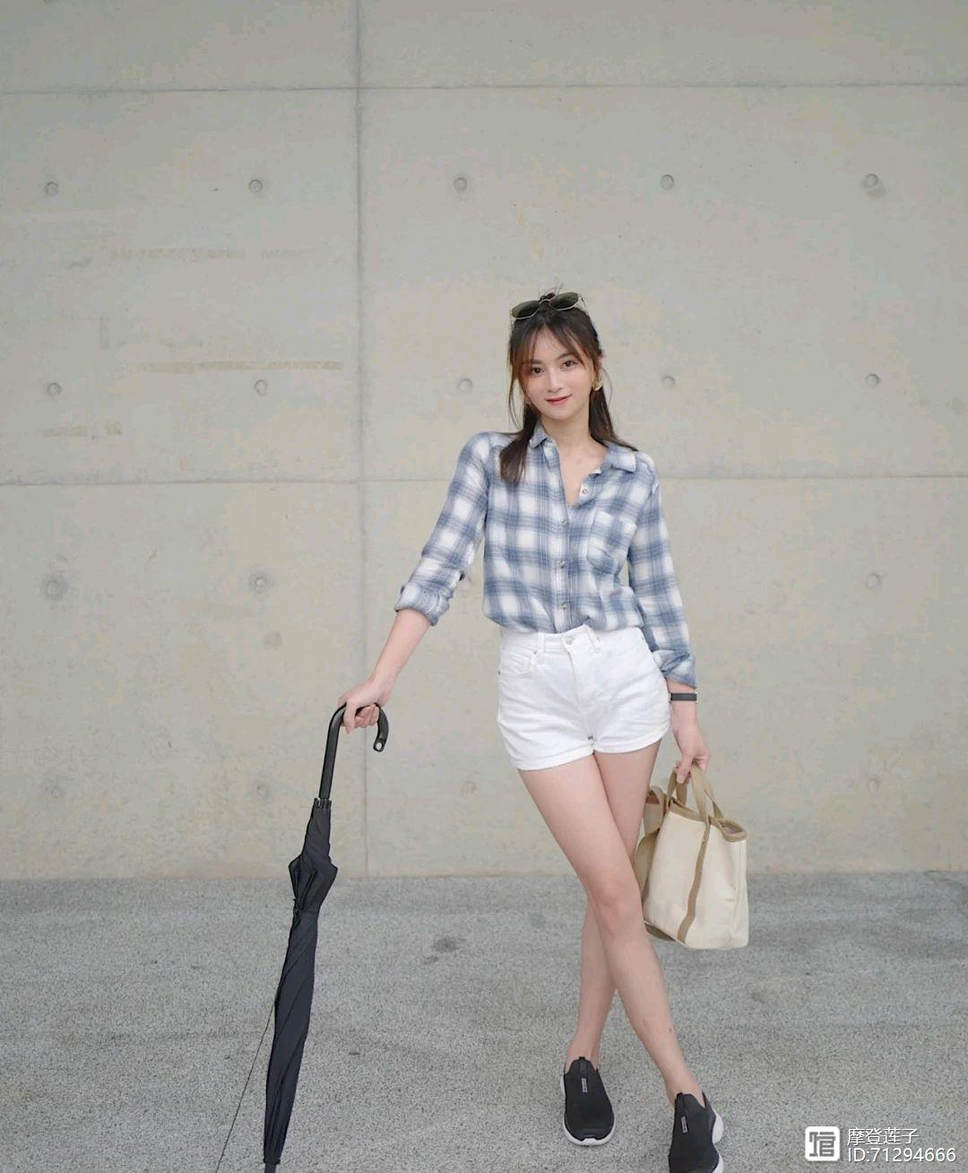 并且她选择了白色半截裤来搭配之后,会给人一种干干净净的感觉,重点是她把衬衫的下摆塞进了半截裤里,就能把腰线提得很高,并且解决了宽松的问题,看起来就特别的精致,哪怕服装是很普通的款式,也穿出了干干净净的视觉效果。