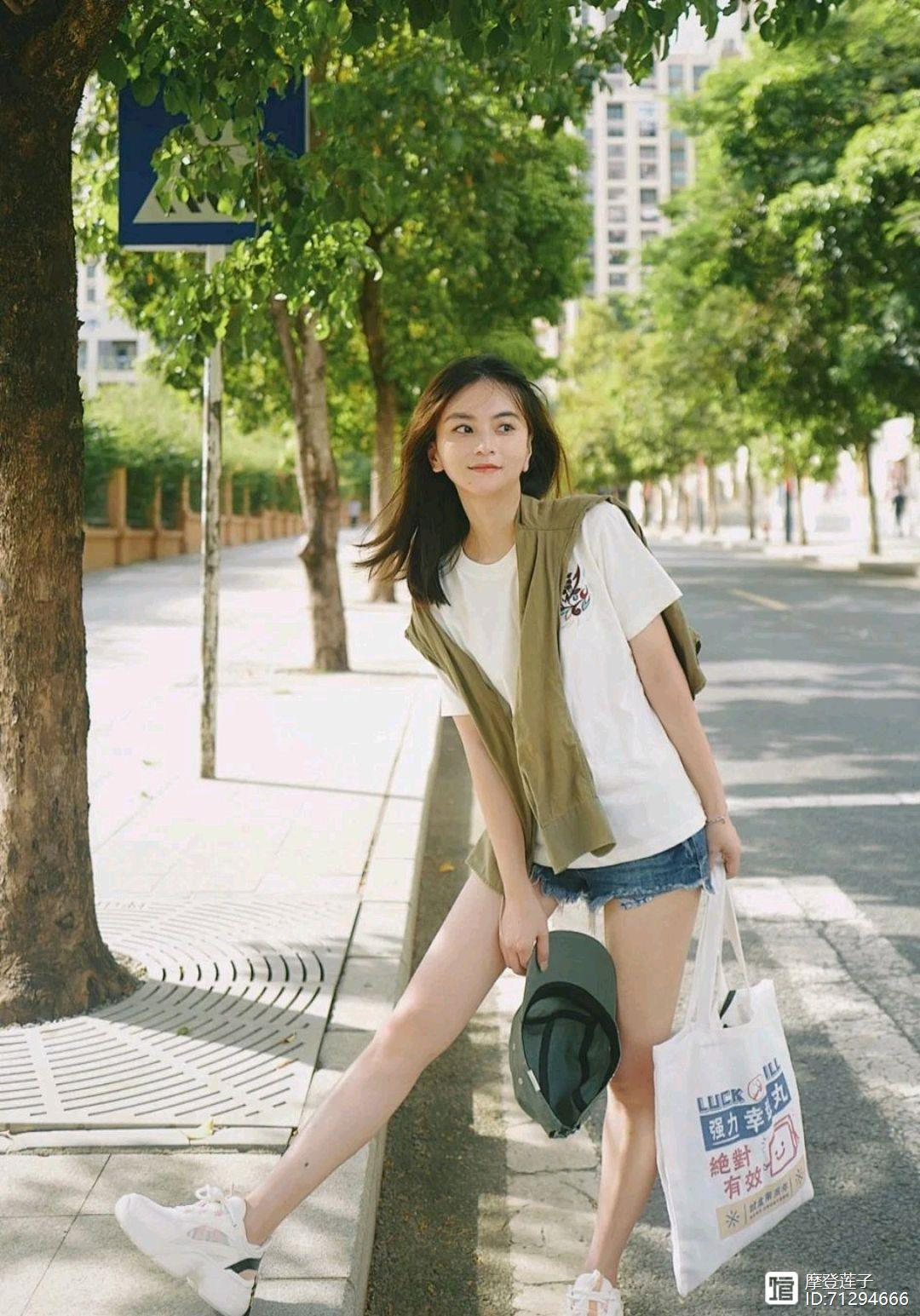 实在不知道把白色T恤穿出高级感的女生,可以借鉴一下这位时尚博主的搭配方式,她选择了一件简简单单的白色T恤搭配蓝色牛仔半截裤,穿出了休闲又清爽的感觉,很适合作为私服穿搭。
