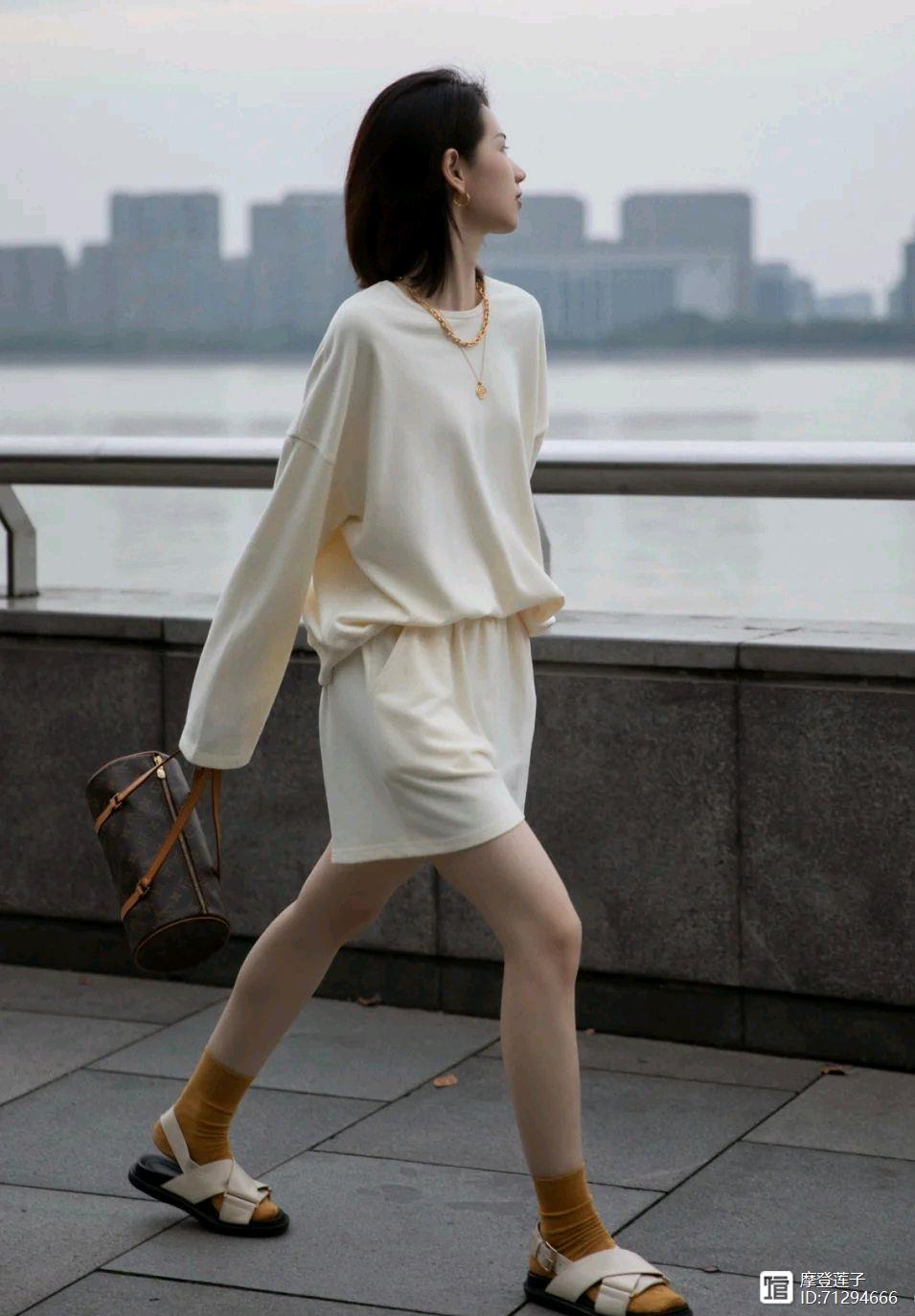 不过尽量优先选择浅色系穿搭,因为明亮的服装颜色可以起到衬托肤色的作用,让整个人看起来更有活力,可以借鉴一下这位时尚博主的穿搭风格和穿搭方式,她选择了简简单单的浅色休闲套装来穿,穿出了干干净净的感觉,并且还很舒适。